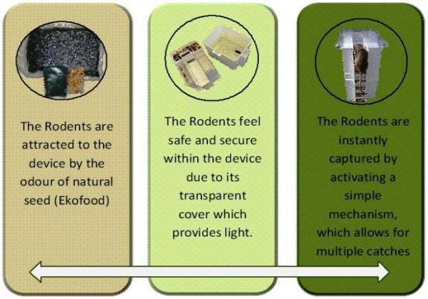 Together with this plan of action the introduction of the Ekomille® systems offers the client an even greater alternative. Not only is the Ekomille® system used to prevent rodents regaining access into areas, it actually traps and kills the rodents in the most humane way possible.